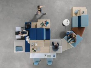 Pieces that move, stack, and connect empower people to shape their environment for the task at hand. The result is a workspace that evolves as quickly as your ideas do. Studies on activity-based offices consistently show that flexible layouts improve both engagement and well-being (GIO Journal).