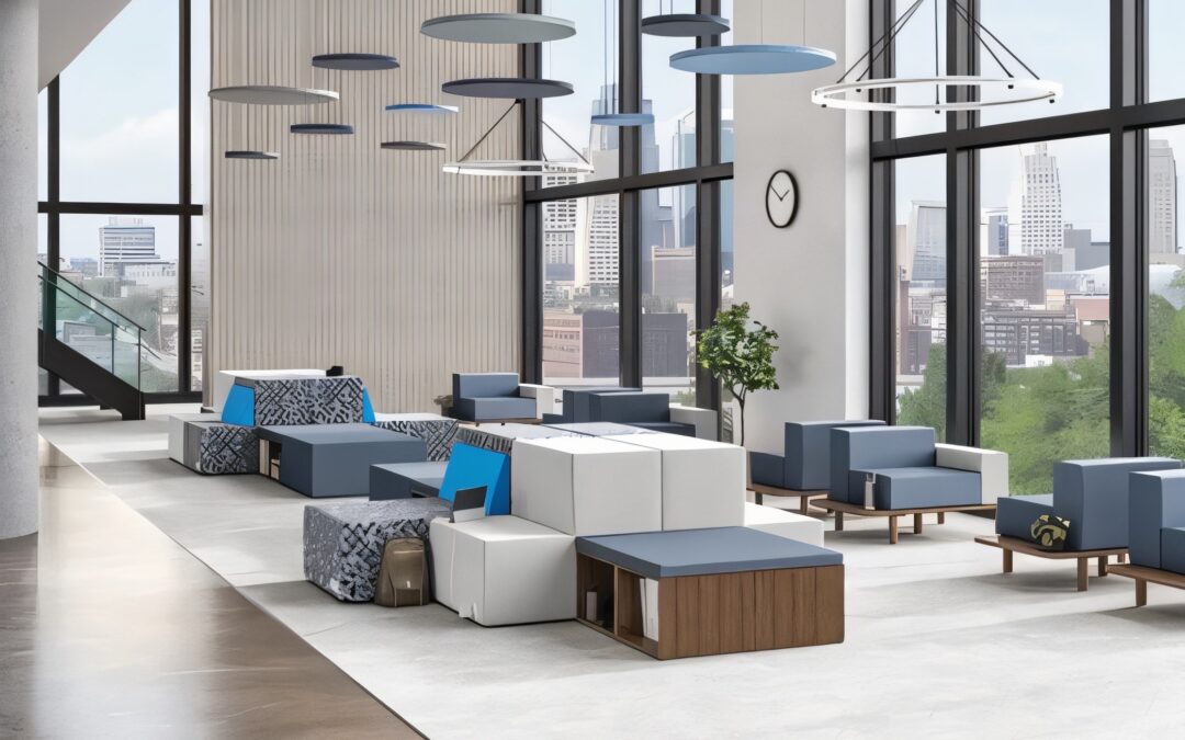 Acoustic solutions such as panels, ceiling baffles, and upholstered furniture help manage sound while maintaining openness and style. These elements soften noise, define spaces, and create comfort without isolating teams.